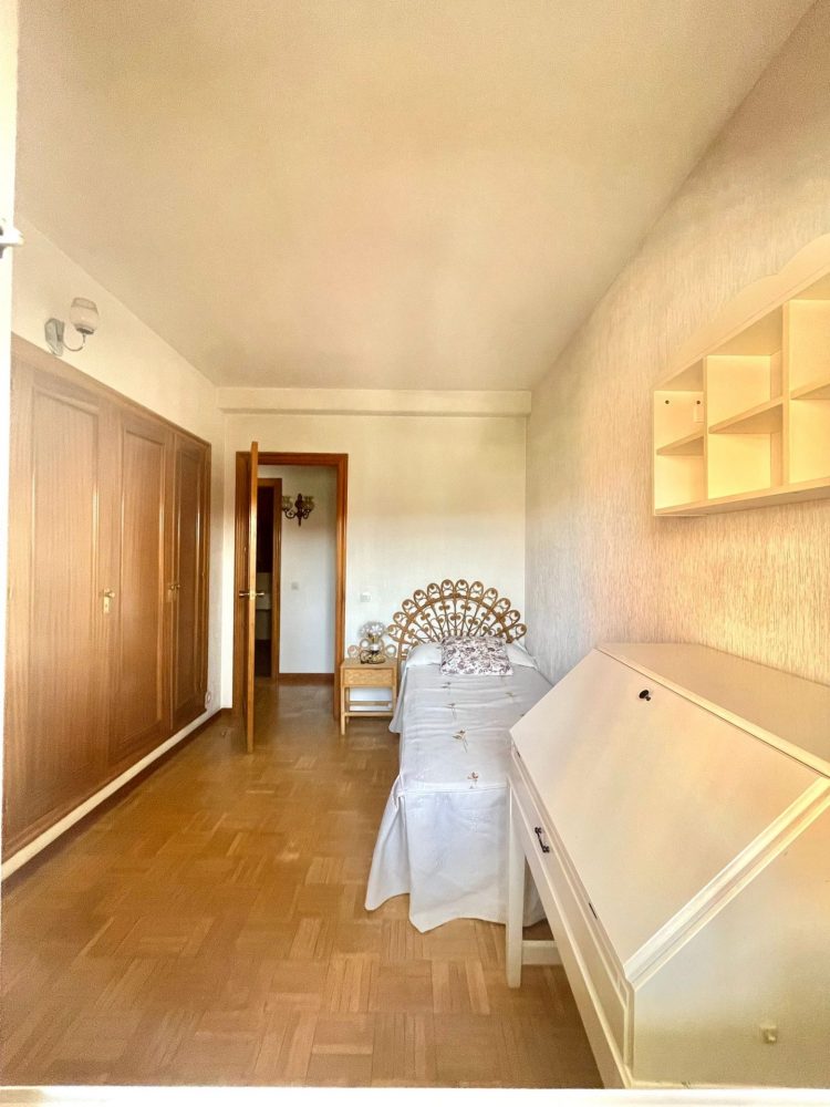 – 3er DORMITORIO, con múltiples opciones de uso (dormitorio, despacho, sala de juegos etc). Dispone de AMPLIO ARMARIO EMPOTRADO, cama de 90cm y escritorio.