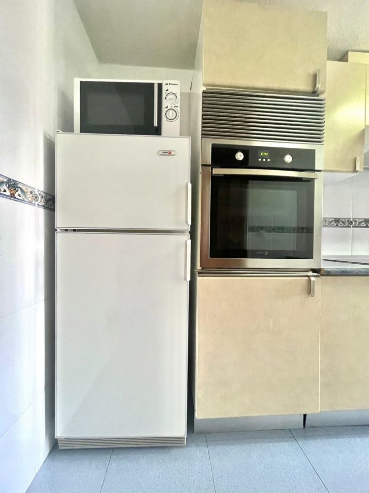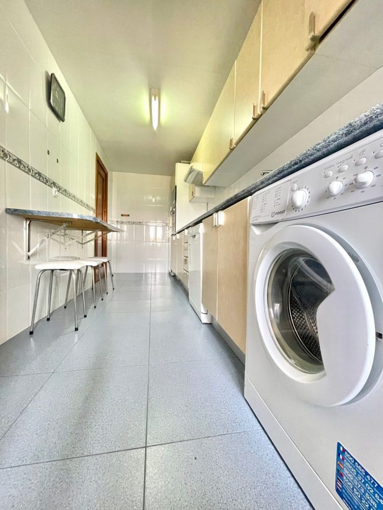 – COCINA INDEPENDIENTE CON ACCESO A 2ª TERRAZA CERRADA/OFFICE. Con ALICATADO EN PERFECTO ESTADO. Amueblada y equipada con electrodomésticos de primeras marcas (frigorífico, vitrocerámica, campana extractora, lavadora, horno y lavavajillas). La misma cuenta con muebles con gran capacidad de almacenaje y mesa abatible.