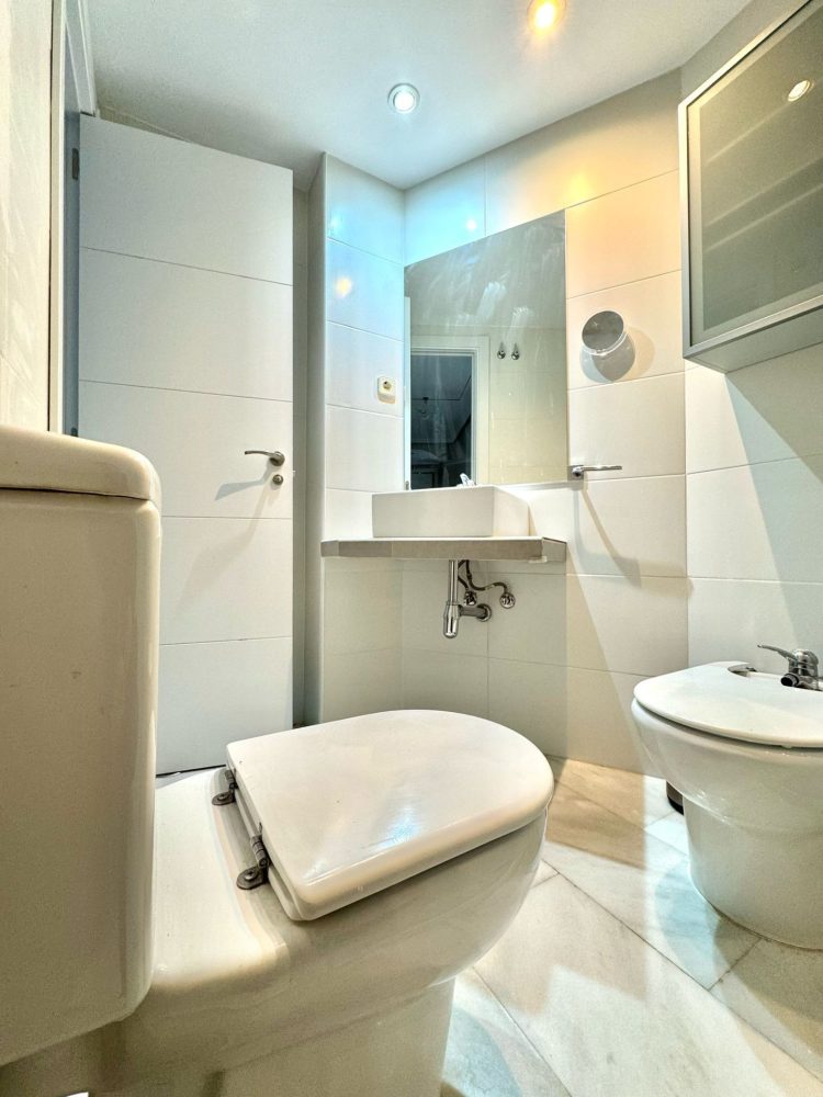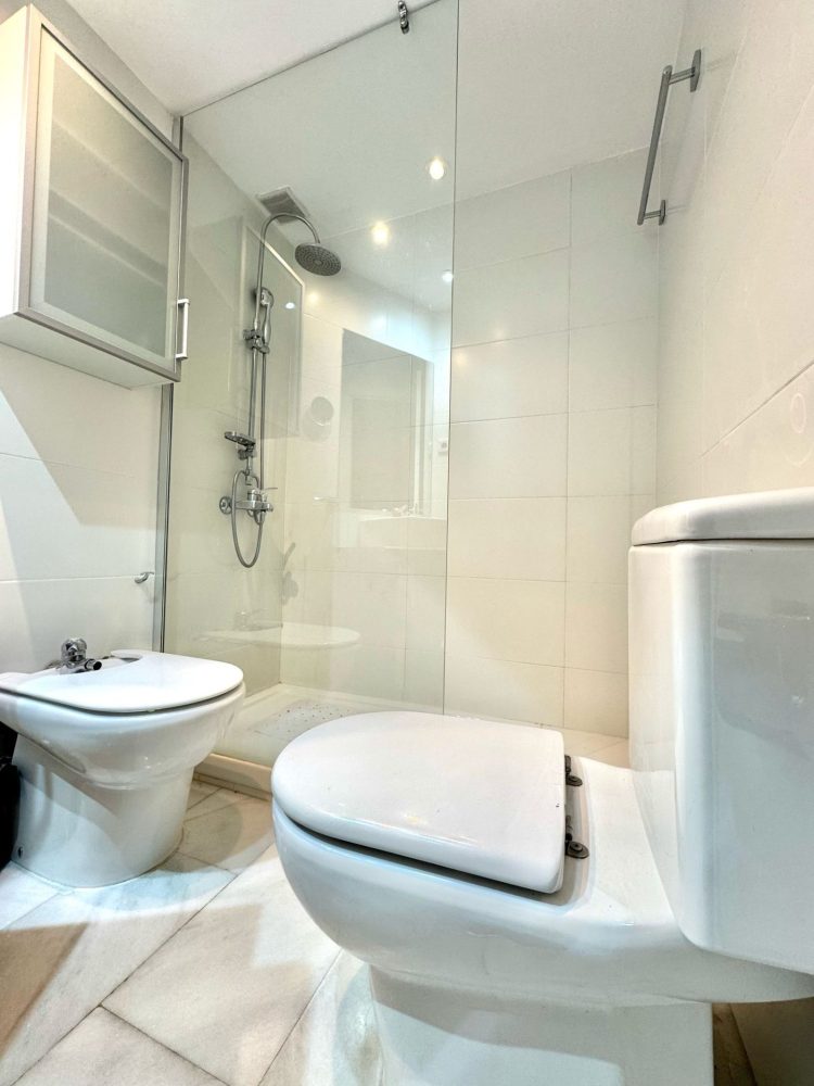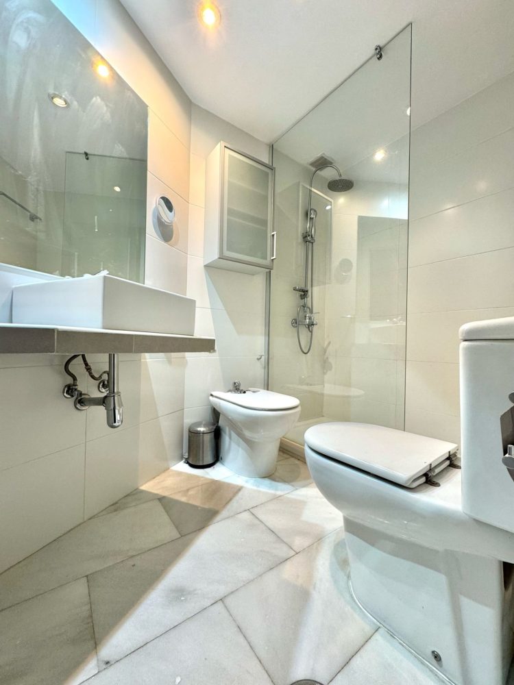 * BAÑO COMPLETO con AMPLIO PLATO DE DUCHA CON MAMPARA, moderno lavabo con un seno, wc y bidet.
