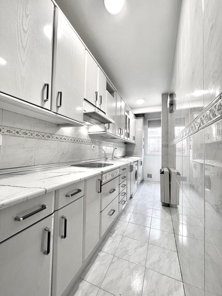 – COCINA INDEPENDIENTE con inmejorable ILUMINACIÓN NATURAL. Completamente equipada, con armarios de madera lacados en blanco de gran capacidad. La misma está equipada con electrodomésticos de primeras marcas (vitrocerámica, campana extractora, horno y microondas).