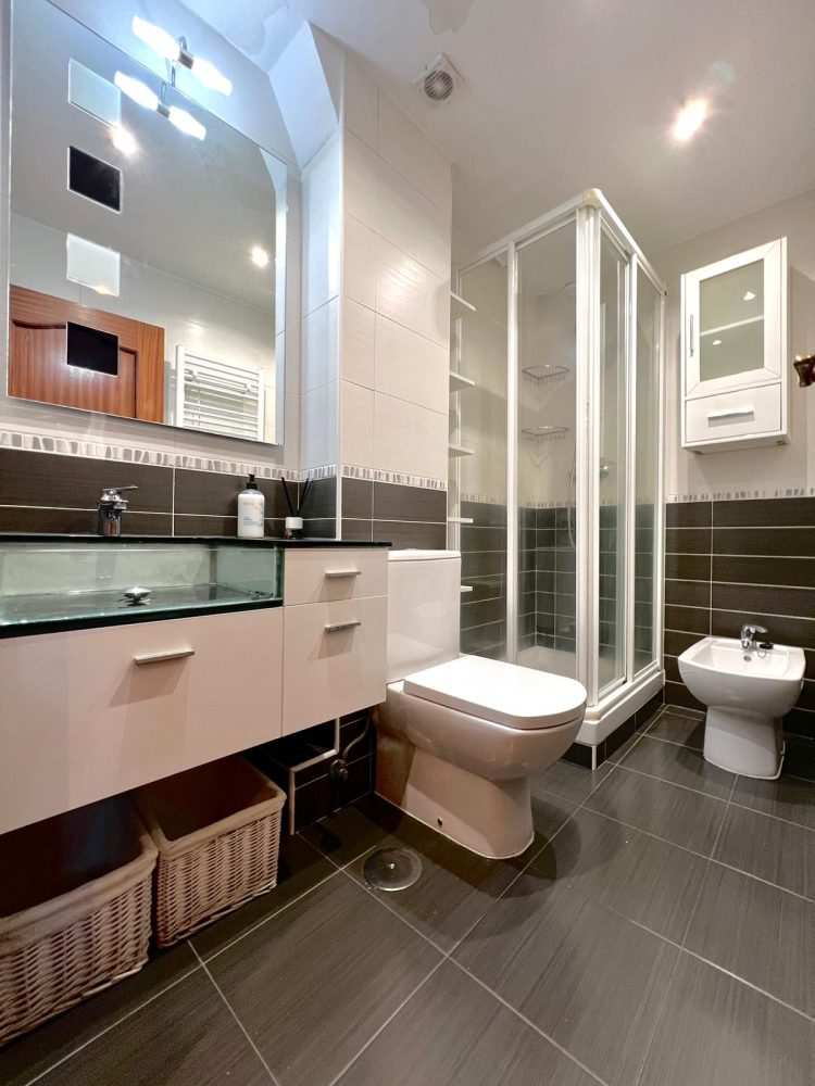 – Cabe destacar, su ESTUPENDO BAÑO REFORMADO. Cuenta con AMPLIO PLATO DE DUCHA CON MAMPARA, wc, bidet, mueble de baño lacado en blanco con espejo y estiloso alicatado en tonos claros que aporta al mismo un estilo actual y moderno.