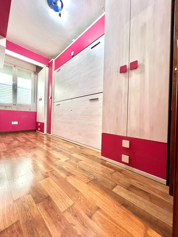 – DORMITORIO INFANTIL igualmente dotado de ARMARIO DE MADERA a medida de gran capacidad y práctica cama infantil abatible.