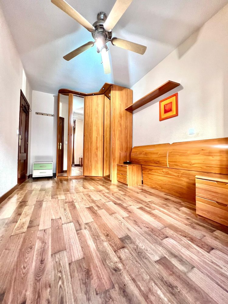 – ESPACIOSO DORMITORIO PRINCIPAL EXTERIOR con gran ARMARIO DE MADERA EMPOTRADO DE 2 CUERPOS, revestido interiormente y en perfecto estado de conservación. Segundo ARMARIO AUXILIAR de gran capacidad, cabecero de madera con mesillas a juego y práctico ventilador en techo.