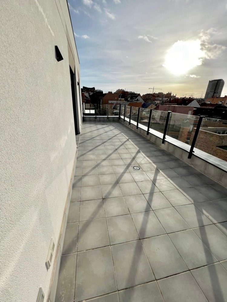 * GRAN TERRAZA EXTERIOR de 24 m2 con acceso desde el salón, toldo, con toma de agua y electricidad. Moderna y elegante barandilla de cristal.