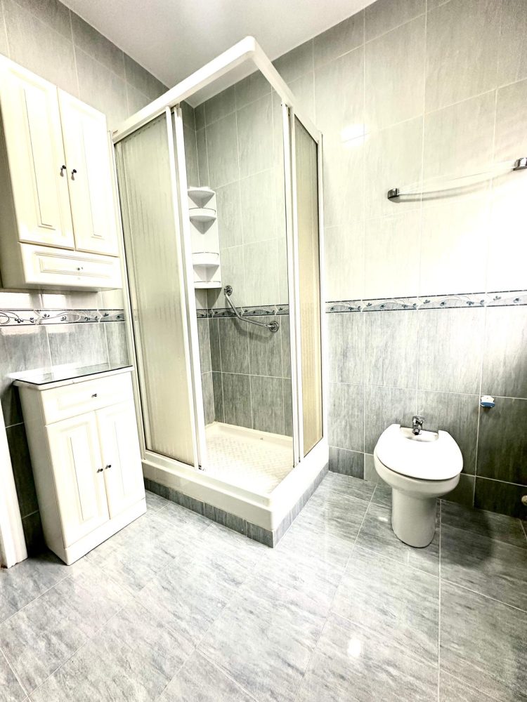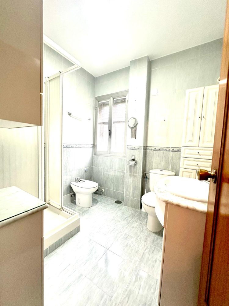 * BAÑO completo con ventana exterior que favorece la ventilación. Cuenta con plato de ducha y mampara, wc, lavabo con espejo y seno. Además, de muebles auxiliares para el almacenaje.