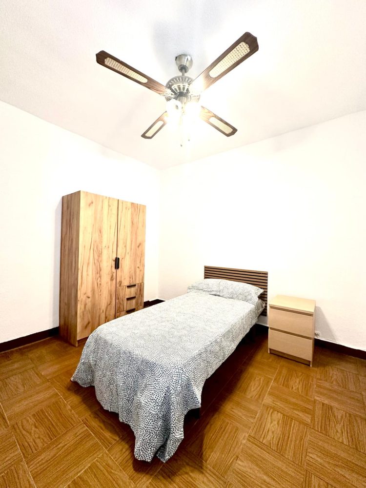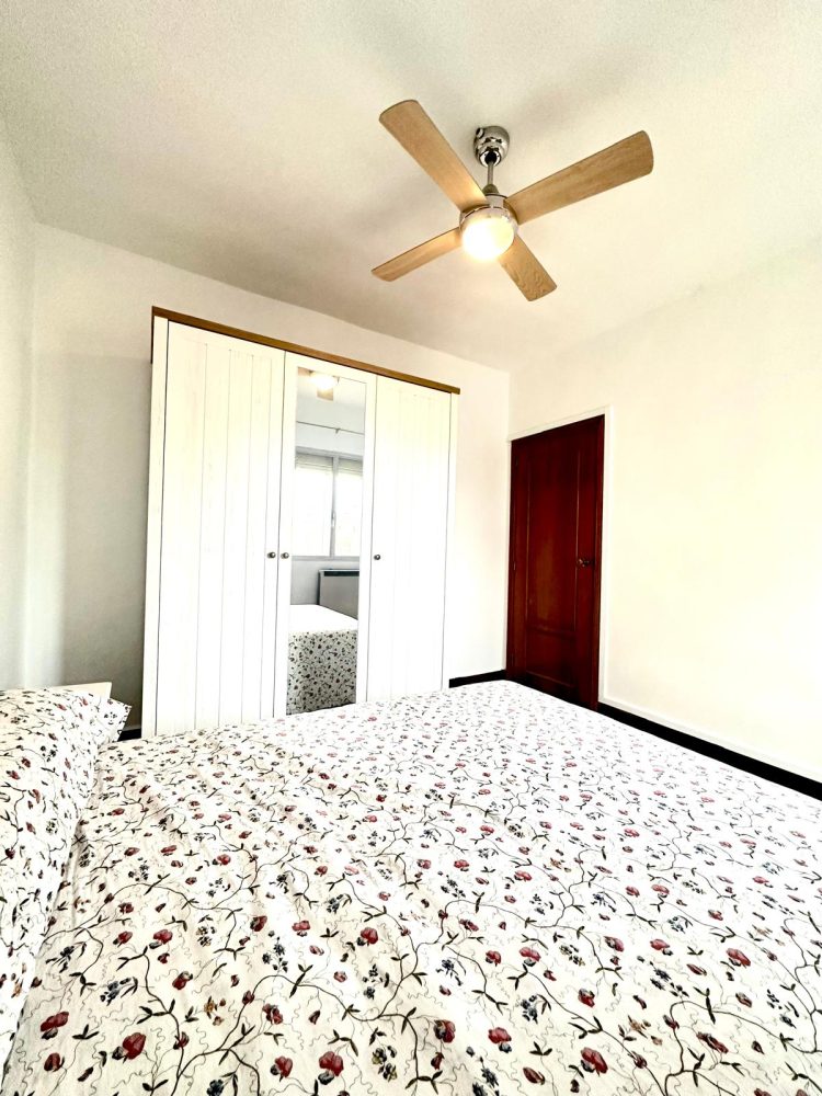 * AMPLIO DORMITORIO PRINCIPAL exterior y muy luminoso. Cuenta con estructura de cama y colchón, mesitas de noche, amplio armario de 3 cuerpo con espejo incorporado y ventilador de techo.