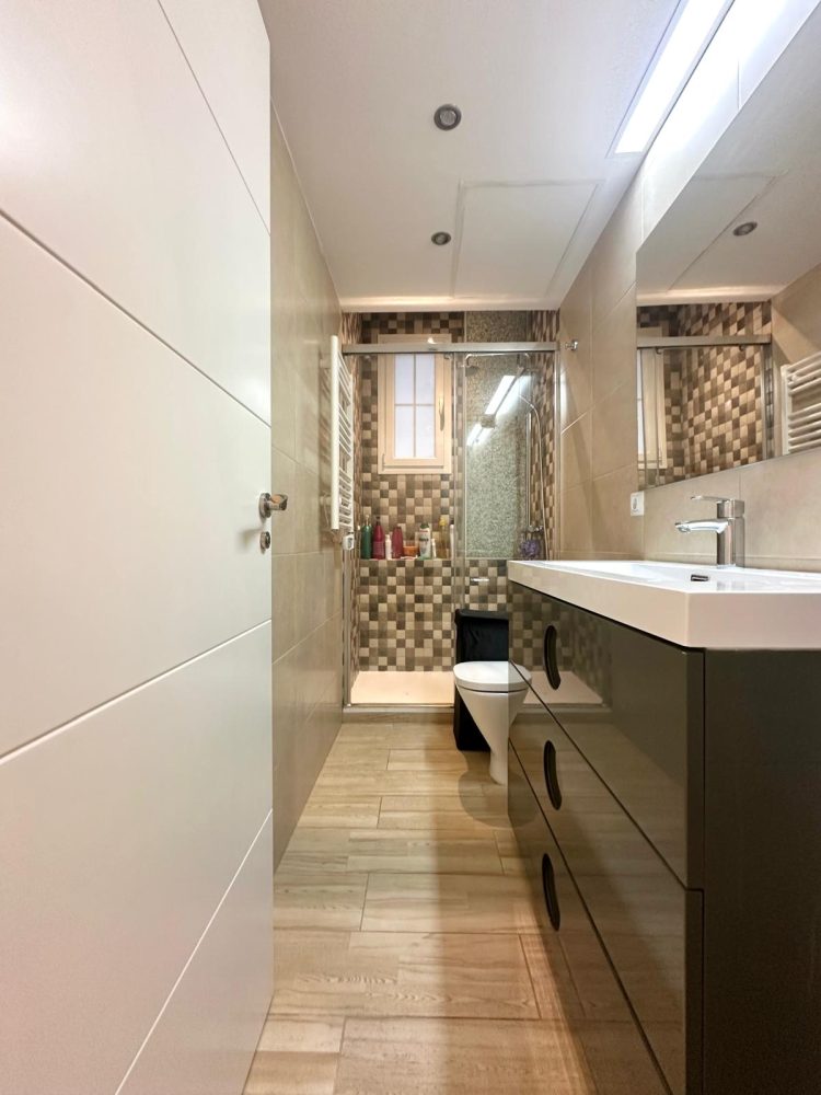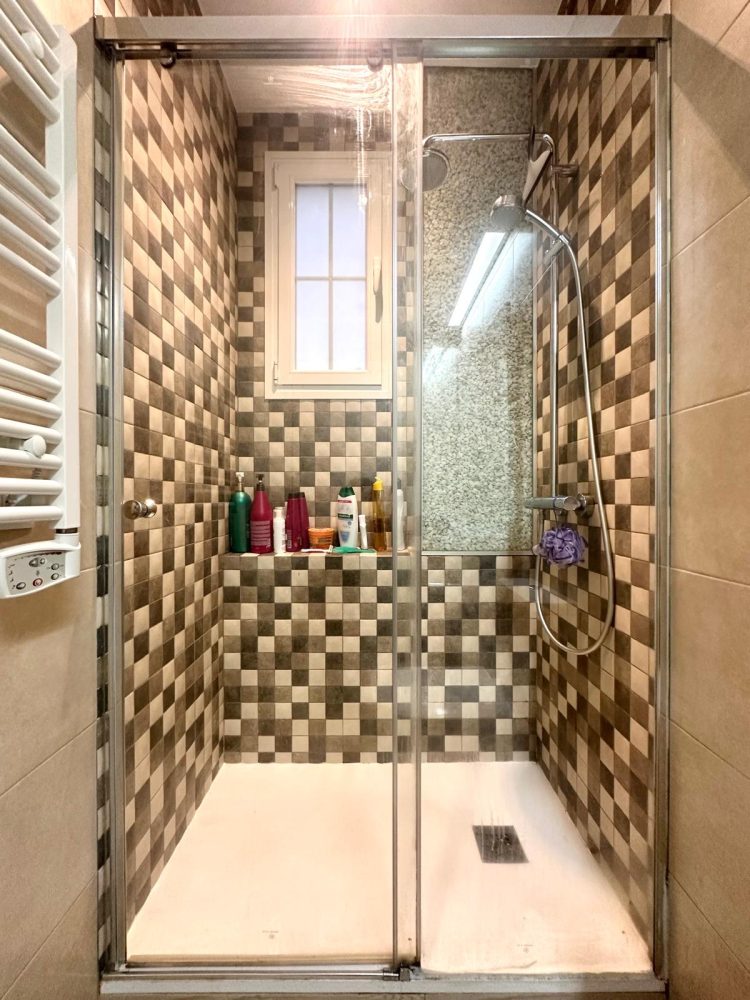 *MODERNO BAÑO completamente reformado, con ventana exterior favoreciendo la ventilación y luz natural a la estancia. Cuenta con AMPLIO PLATO DE DUCHA CON MAMPARA, wc, moderno mueble de baño con un seno y toallero radiador.