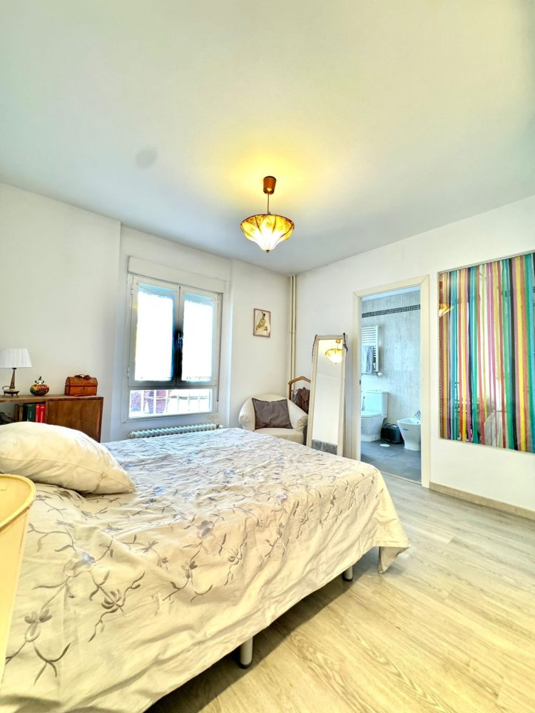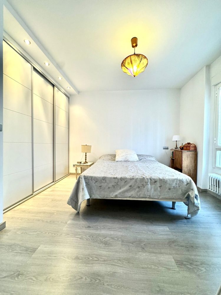 – AMPLIO DORMITORIO SUITE, muy luminoso con AMPLIO ARMARIO EMPOTRADO DE 3 CUERPOS revestido interiormente y con gran capacidad de almacenaje. Dispone de cama de matrimonio mesillas de noche y sinfonier.