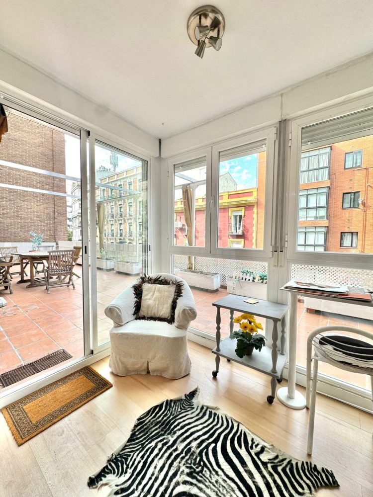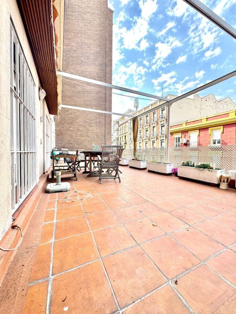El mismo da acceso a una estupenda TERRAZA ABIERTA (60 m2 aprox), con agradables vistas y equipada con toldos.