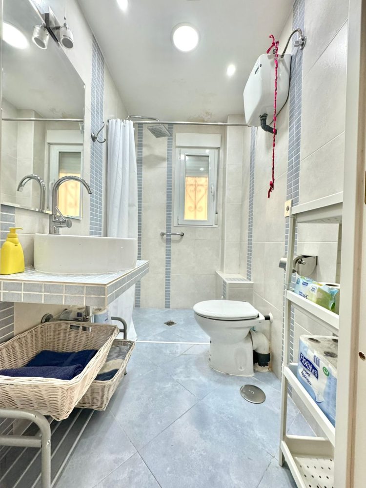 -ESTILOSO BAÑO DE SERVICIO. El mismo dispone de moderno lavabo con grifería, wc y AMPLIO PLATO DE DUCHA.
