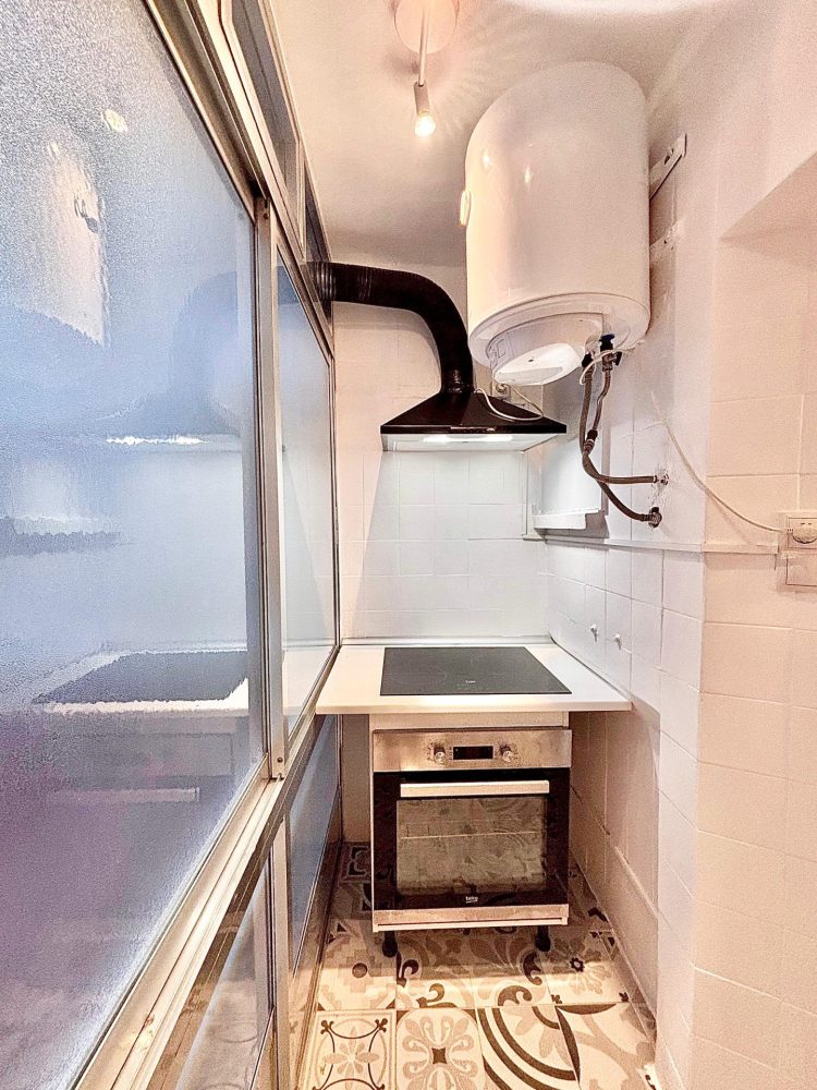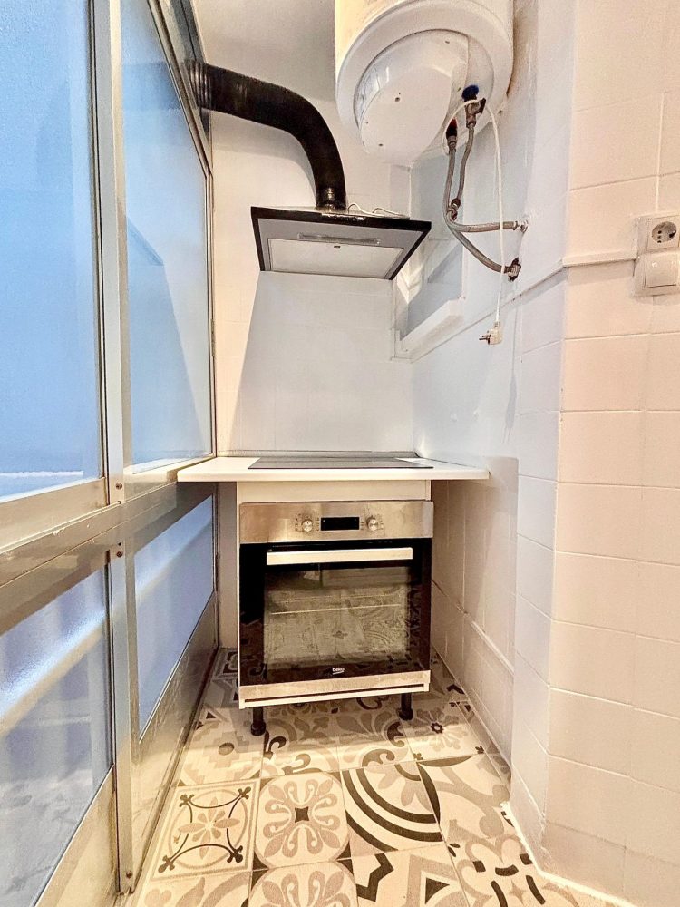 * COCINA UNIDA A TERRAZA TENDEDERO exterior completamente reformada y equipada con todos los electrodomésticos para el uso diario (frigorífico a estrenar, lavadora de carga superior, horno, vitrocerámica, campana extractora y lavavajillas). La misma cuenta con modernos muebles con gran capacidad de almacenaje. Además de la ventana en la terraza que permite la ventilación e iluminación natural.