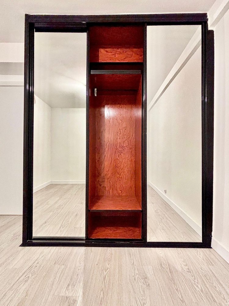* DORMITORIO PRINCIPAL, equipado con magnifico armario empotrado de tres cuerpos con espejos completamente revestido en su interior, el ambiente también cuenta con lampara ventilador.
