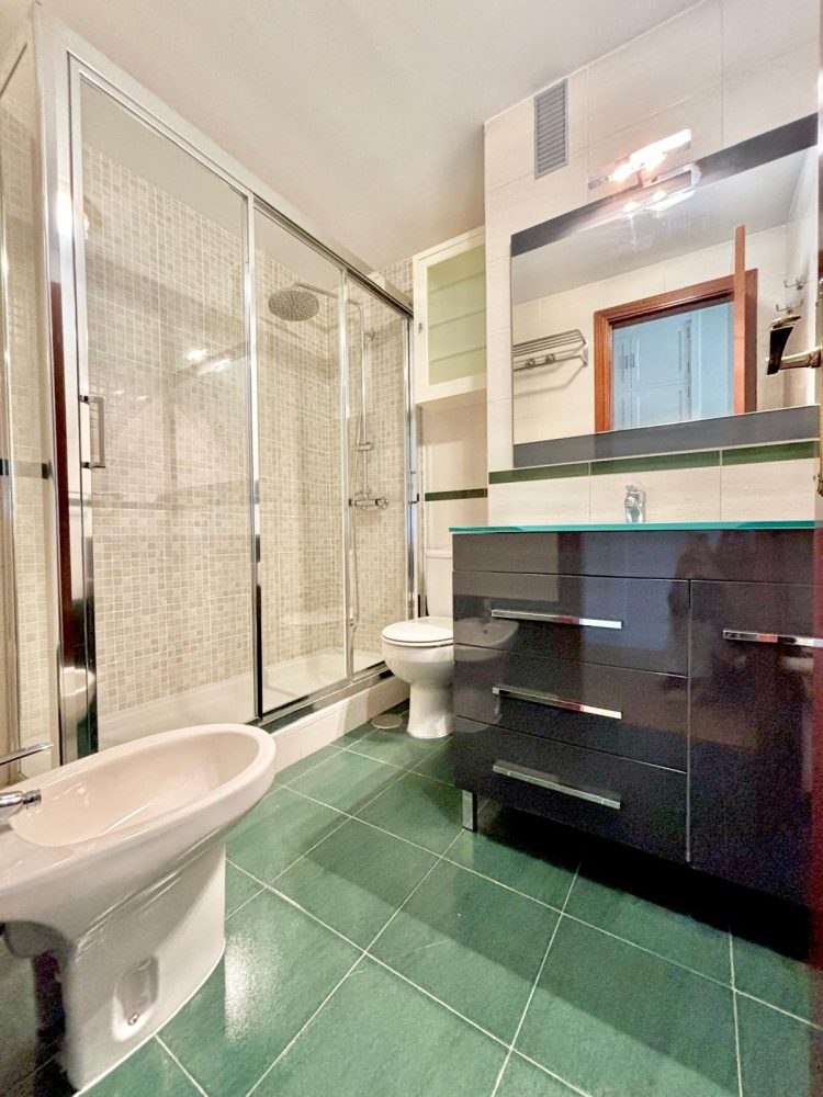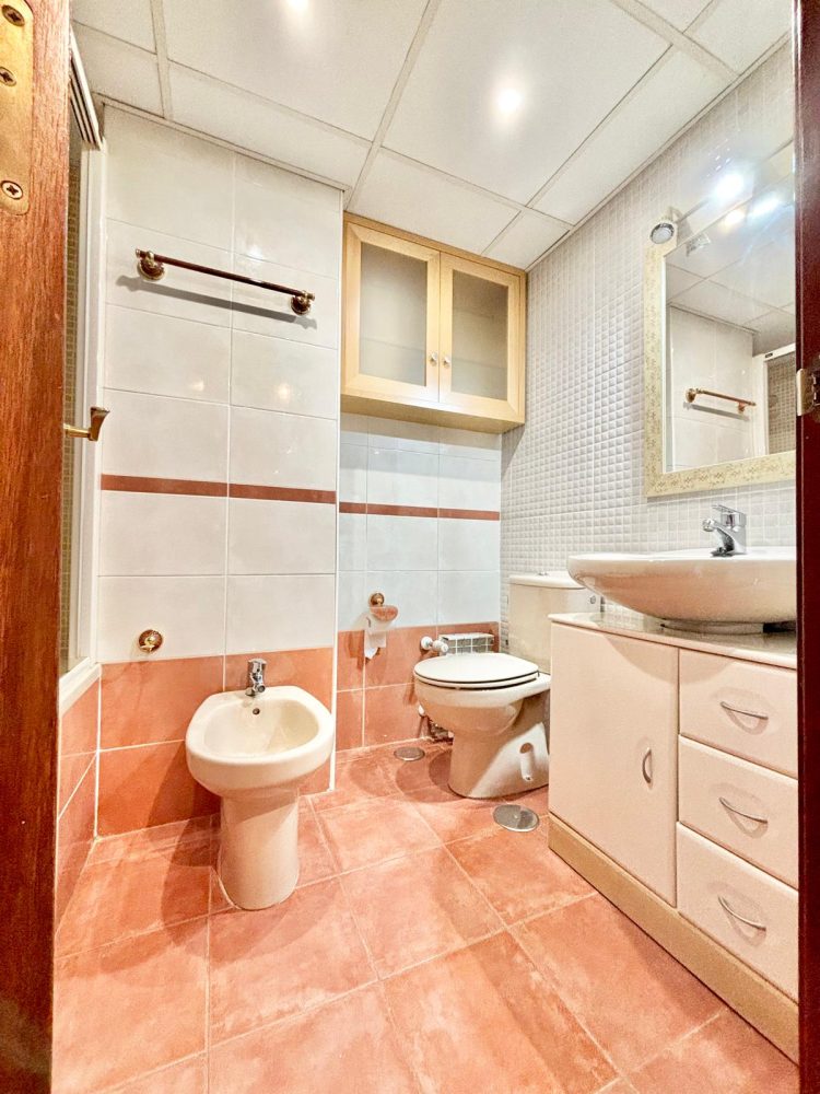 * BAÑO AUXILIAR equipado con bañera, wc, bidet y lavabo con espejo.