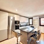 * COCINA independiente exterior. Completamente amueblada y equipada con todos los electrodomésticos necesarios para el uso diario (frigorífico, lavadora, lavavajillas, microondas, vitrocerámica, campana extractora y horno). Dispone de muebles superiores e inferiores de madera blancos con gran capacidad de almacenaje, fregadero amplio instalado bajo encimera. Gran ventana exterior favoreciendo ventilación y luz natural.