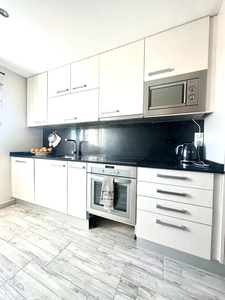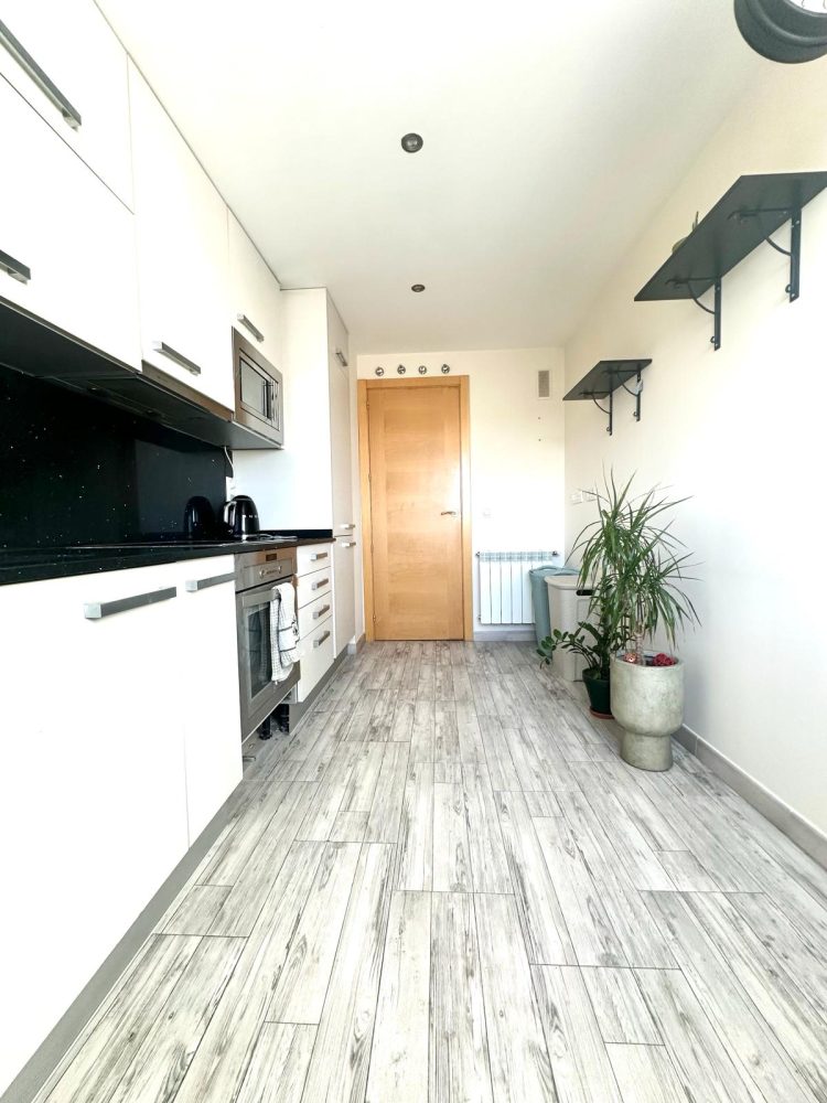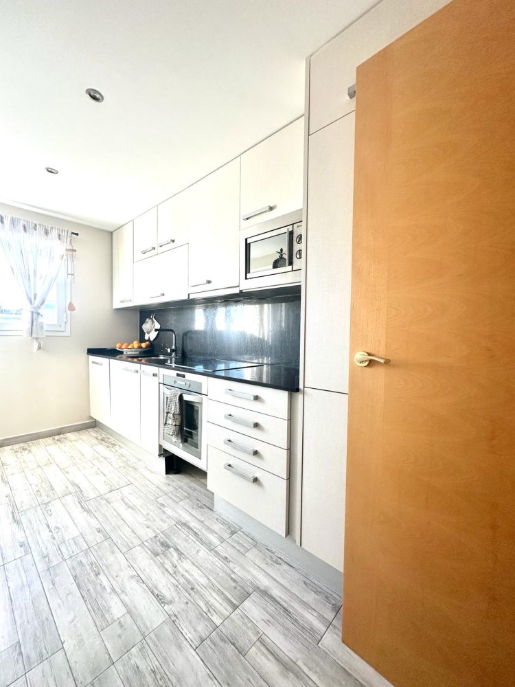 *MODERNA Y AMPLIA COCINA INDEPENDIENTE CON TENDEDERO CERRADO. La misma está completamente amueblada (muebles de madera lacados en blanco y gran capacidad de almacenamiento) equipada con electrodomésticos de primeras marcas (frigorífico, vitrocerámica, campana extractora, horno y microondas integrado). NO DISPONE DE LAVADORA.