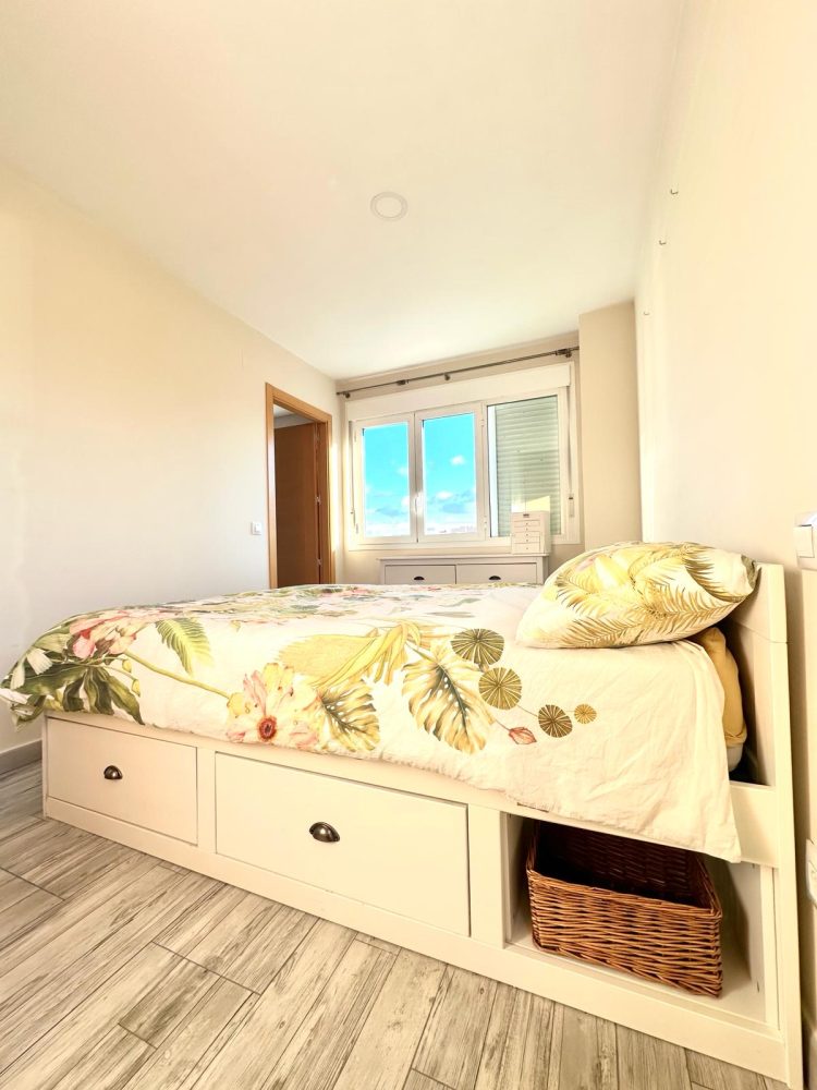 -AMPLIO DORMITORIO PRINCIPAL CON BAÑO SUITE. Excelente iluminación natural. El mismo dispone de ARMARIO EMPOTRADO DE 2 CUERPOS, revestido interiormente, canapé de 1,50m, mesillas de noche a juego y sinfonier. Agradables vistas a las zonas comunes.