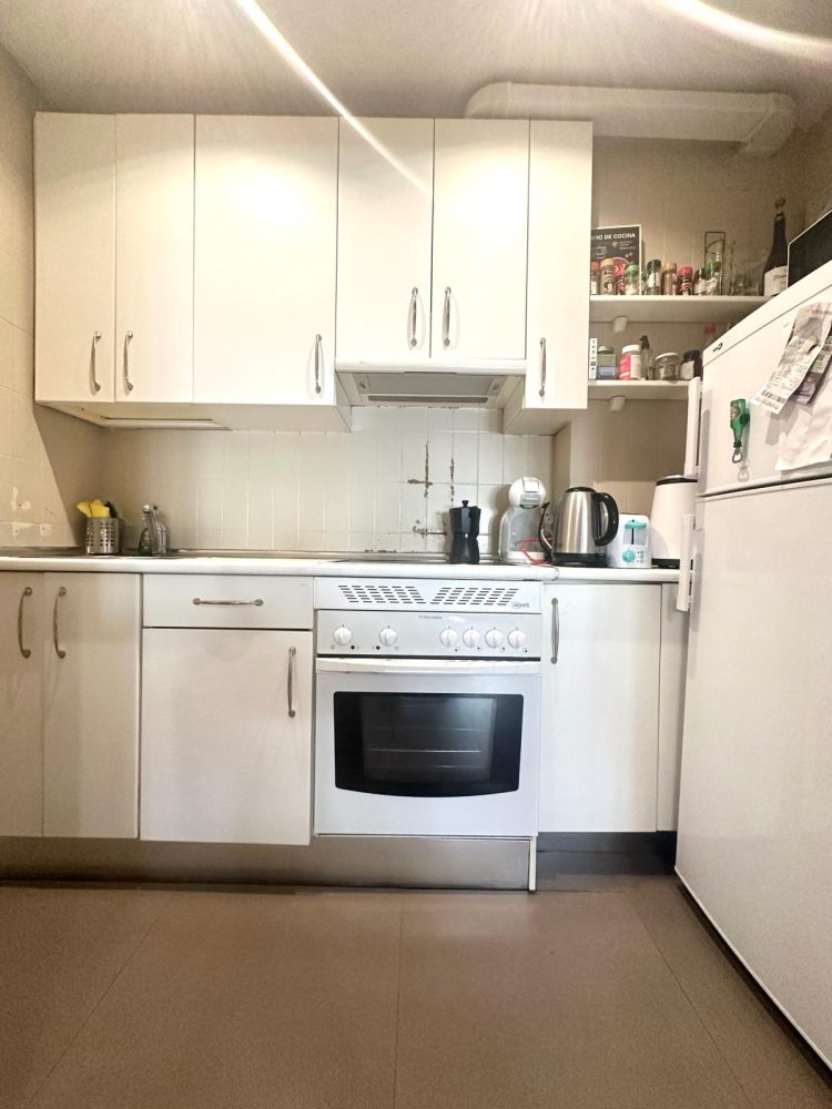 *COCINA AMERICANA equipada con electrodomésticos (frigorífico, horno y vitrocerámica y campana extractora). Dispone de muebles lacados en blanco.