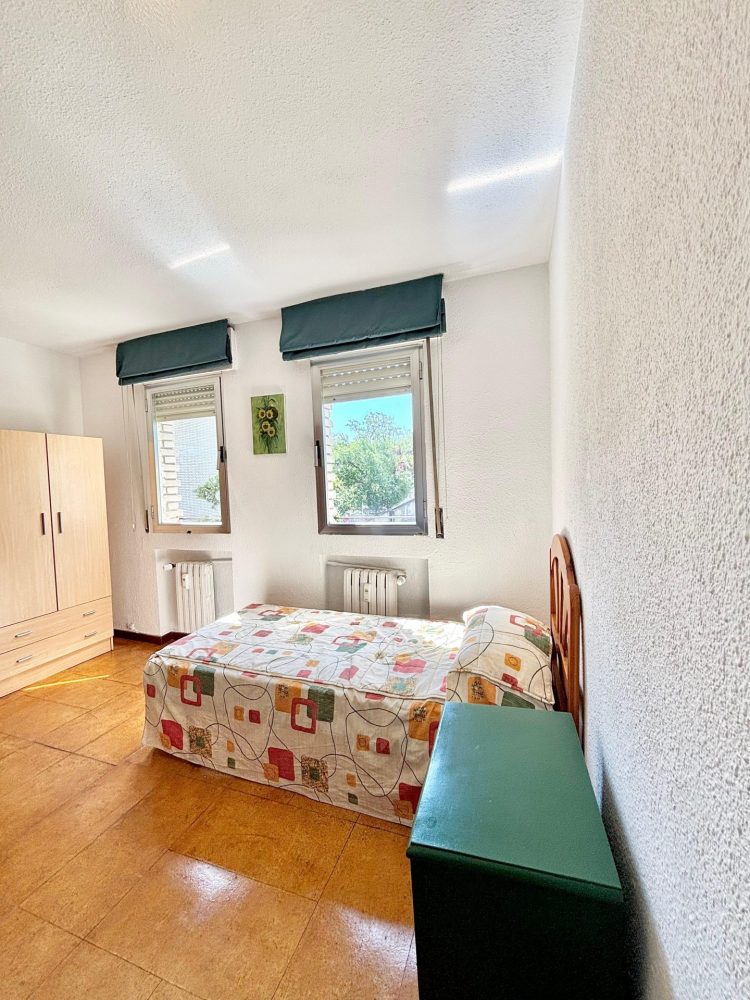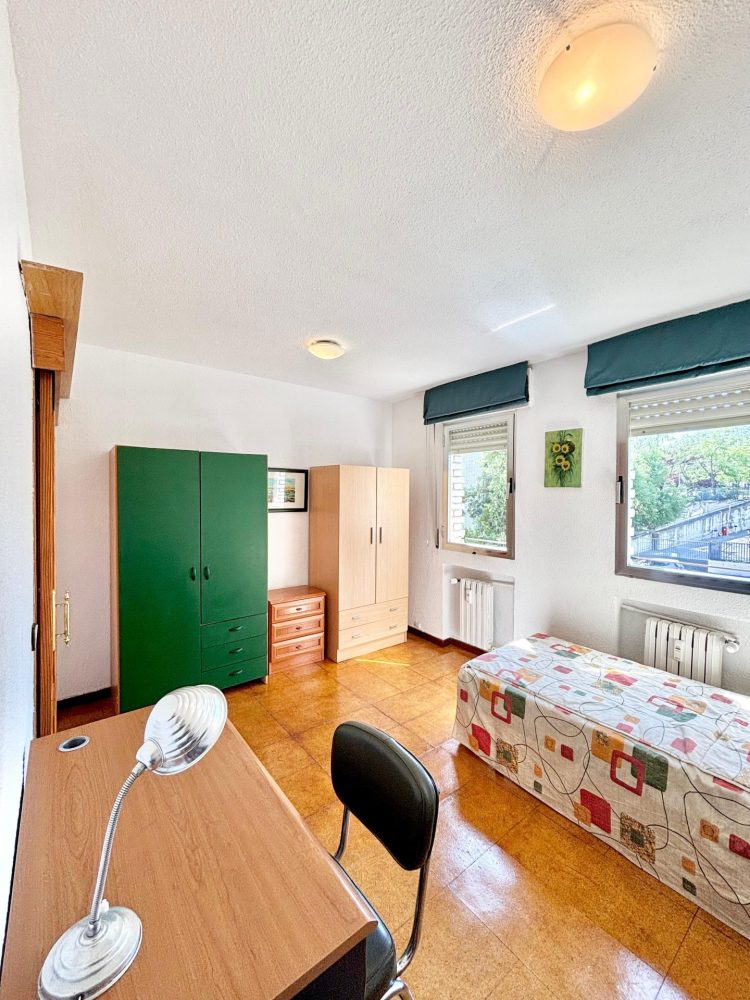 * 2º DORMITORIO con cama individual y mesita de noche, 2 armarios auxiliares de 2 cuerpos, escritorio con silla. En este ambiente nos encontramos con un muy útil tendedero en sus 2 ventanas con orientación a espectacular jardín, las cuales brindan muy buena luminosidad a la estancia.