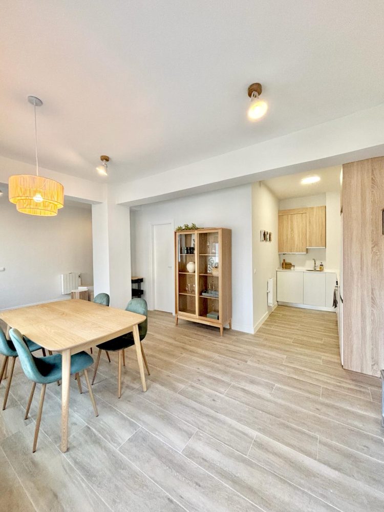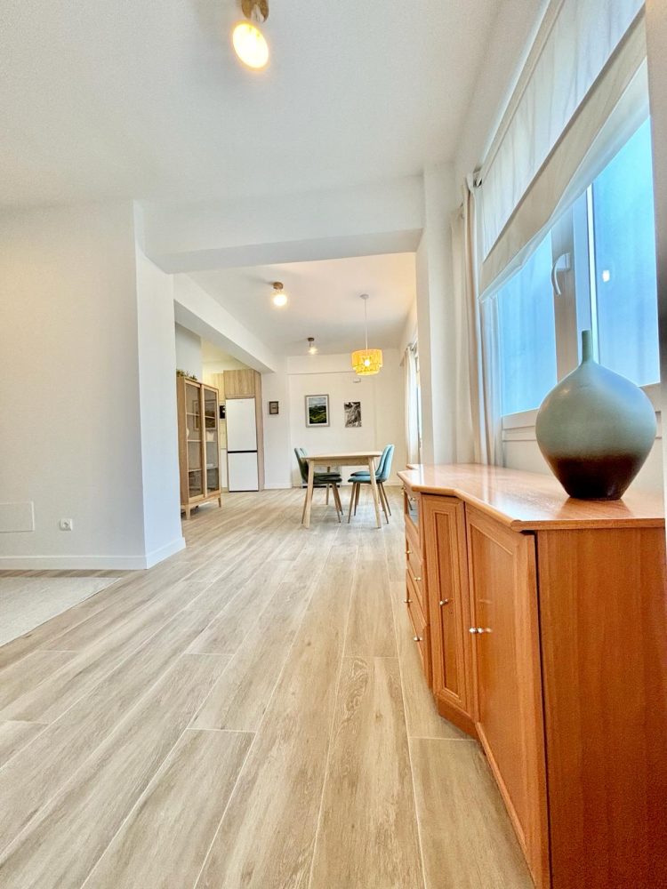 * Cabe destacar su estupendo SALÓN-COMEDOR, EXTERIOR y con gran luz natural gracias a sus amplios ventanales con cierre Climalit oscilobatiente. Cuenta con inmejorable orientación y distribución, equipado con moderno sofá de 3 plazas, estilosas mesitas de centro y alfombra, práctico conjunto de mesa comedor y 4 sillas con coqueto aparador.