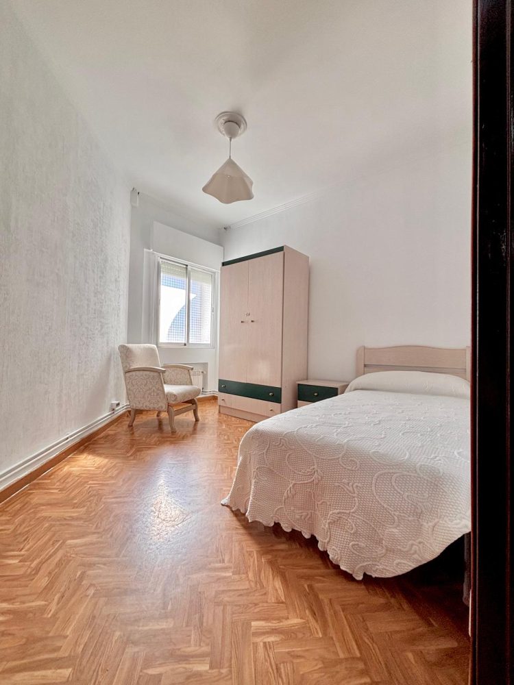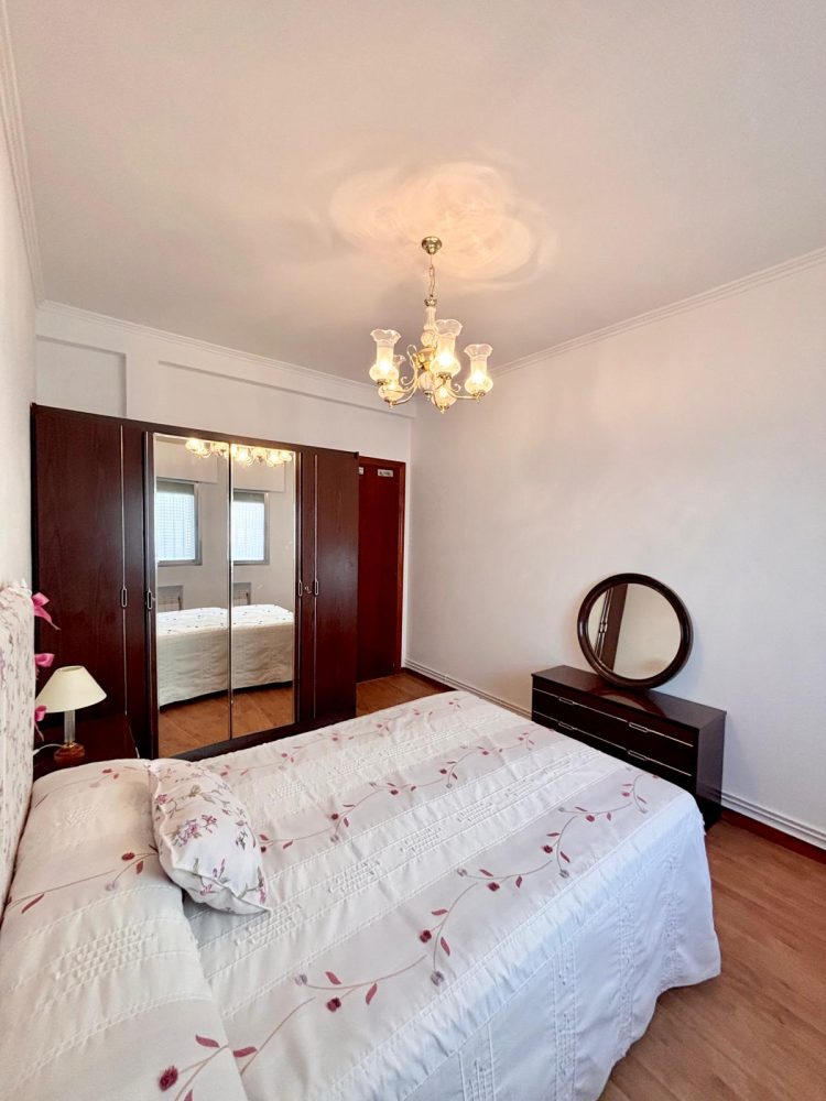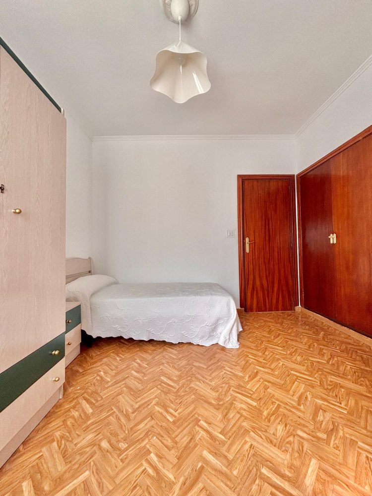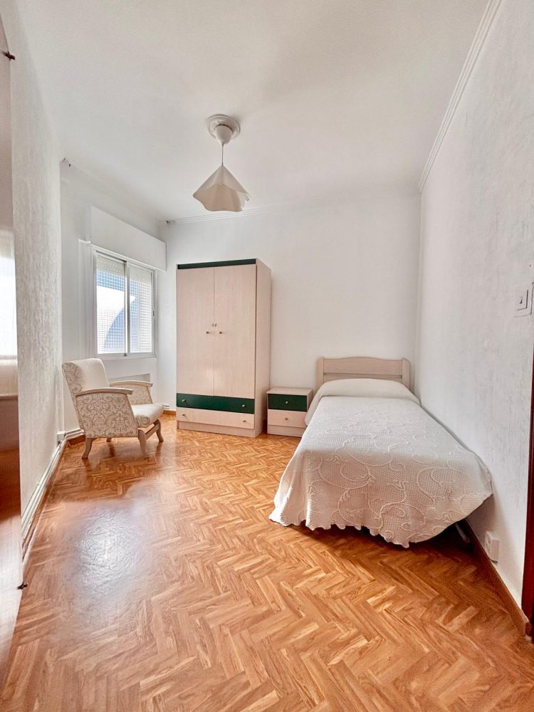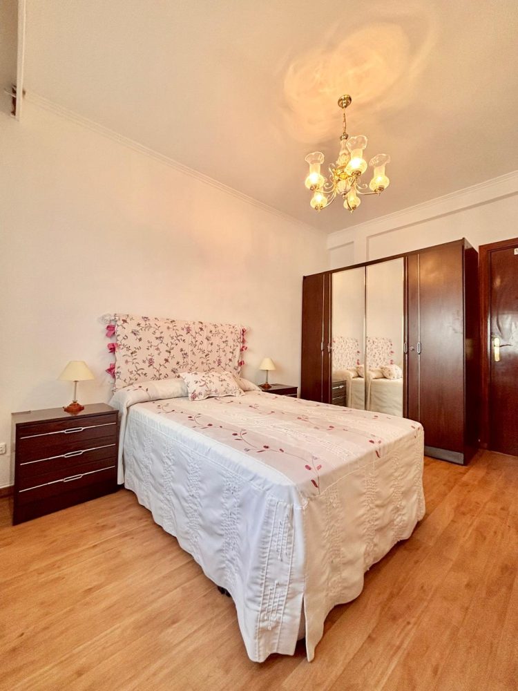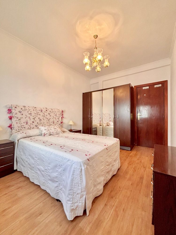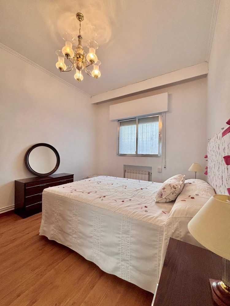 * El espacioso DORMITORIO PRINCIPAL es completamente exterior y goza de gran luminosidad natural durante el día. El mismo está equipado con amplio armario de madera con gran capacidad de almacenamiento. Cama doble 1,20 cm, mesitas de noche y cómoda a juego. Suelo recién instalado.