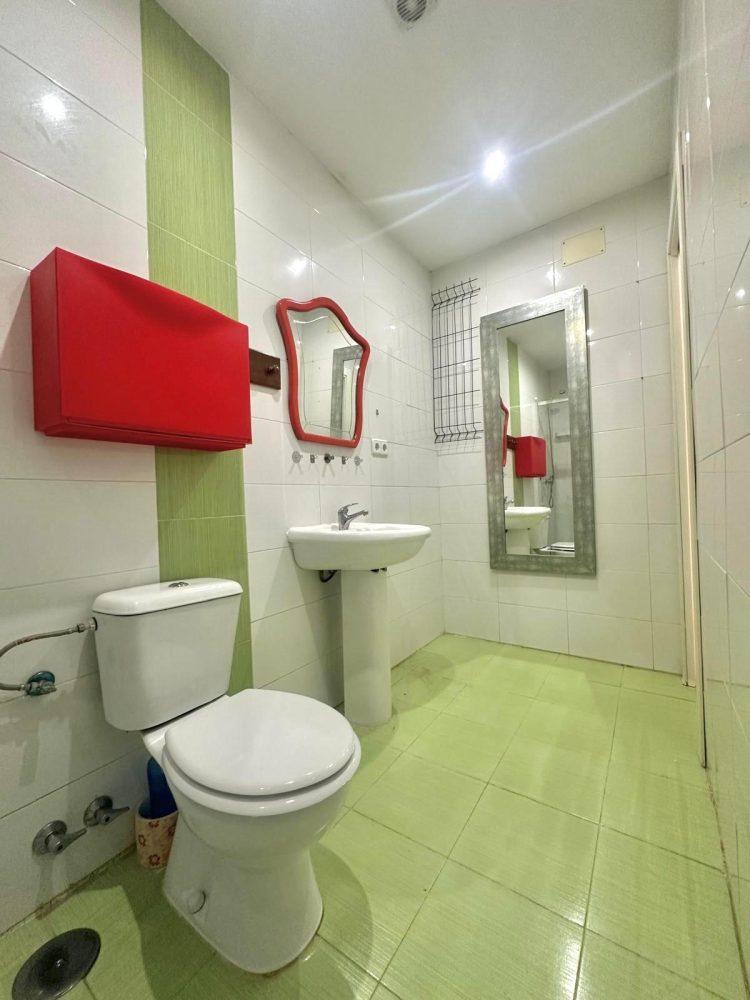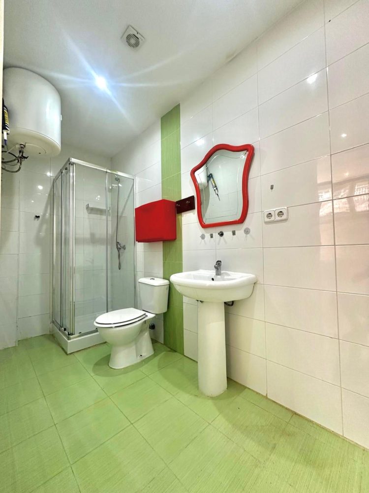 -BAÑO COMPLETO con alicatado en tonos claros que aportan al mismo un estilo actual y moderno. Equipado con AMPLIO PLATO DE DUCHA con mampara, wc con tapa y lavabo.